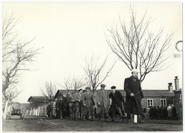 Judar i arbetslägret Lipa i Böhmen på väg ut för att arbeta. Foto: USMHH
