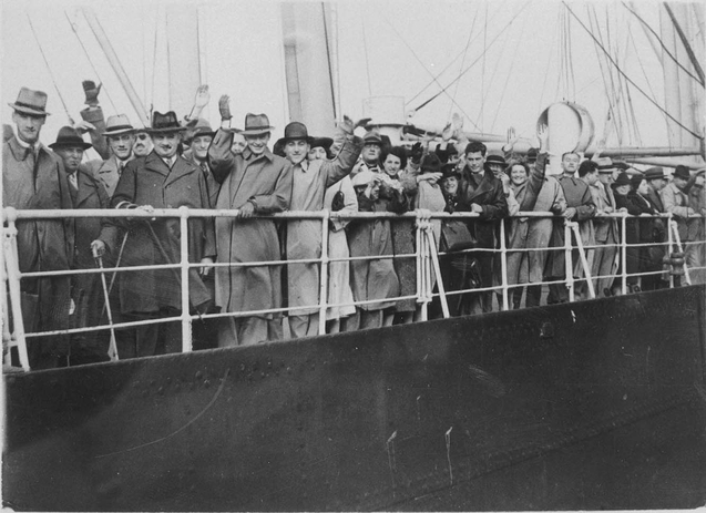 Judiska passagerare vid ankomsten till Southampton i England. Foto: Yad Vashem
