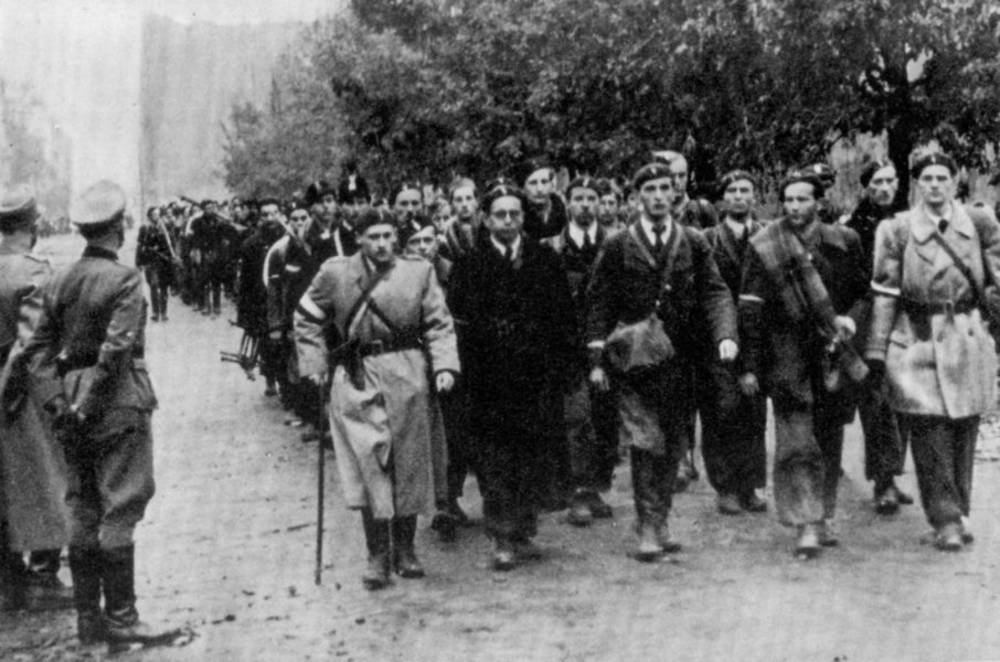 Soldater från den polska hemmaarmén överlämnar sig till tyska Wehrmacht i Warszawa den 5 oktober 1944 Foto: Okänd