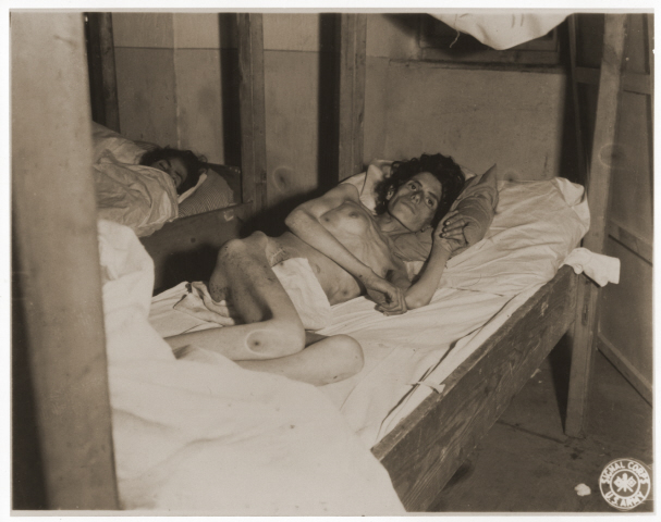 De som överlevde lägret var i mycket dålig kondition. Här vilar 22-åriga Bina Hauptman ut på ett amerikansk fältsjukhus i Volary i Tjeckien. Foto: NARA/USHMM