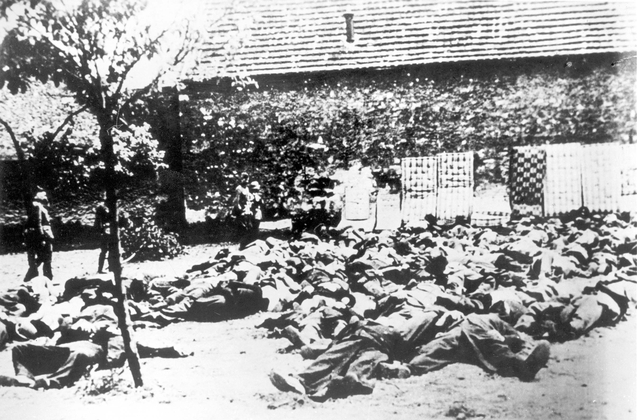 Nazisterna hämnades för mordet på Heydrich genom att avrätta alla 192 män och över 70 av kvinnorna i byn Lidice, utanför Prag- Foto: Yad Vashem