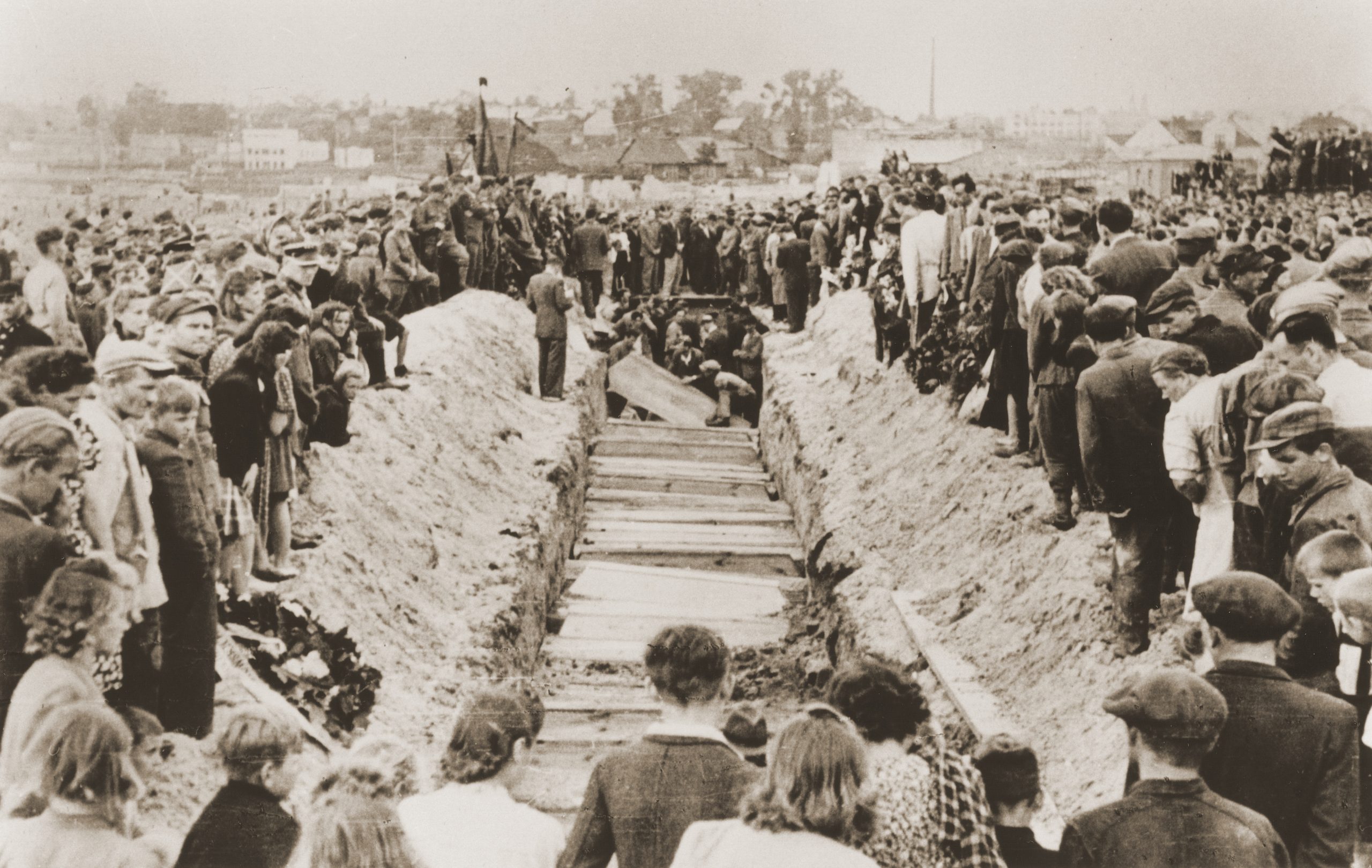 Massbegravning efter pogromen 4 juli 1946. Kielce, Poland. Foto: USHMM / Fotograf okänd.