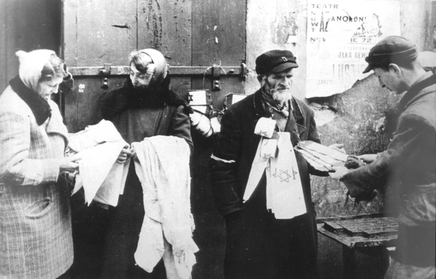 Från och med den 1 december 1939 var judarna i generalguvernementet Polen tvungna att bära en vit armbindel med en blå Davidsstjärna på. Armbindeln skulle vara minst tio centimeter bred och placeras på höger arm, utanpå kläderna.