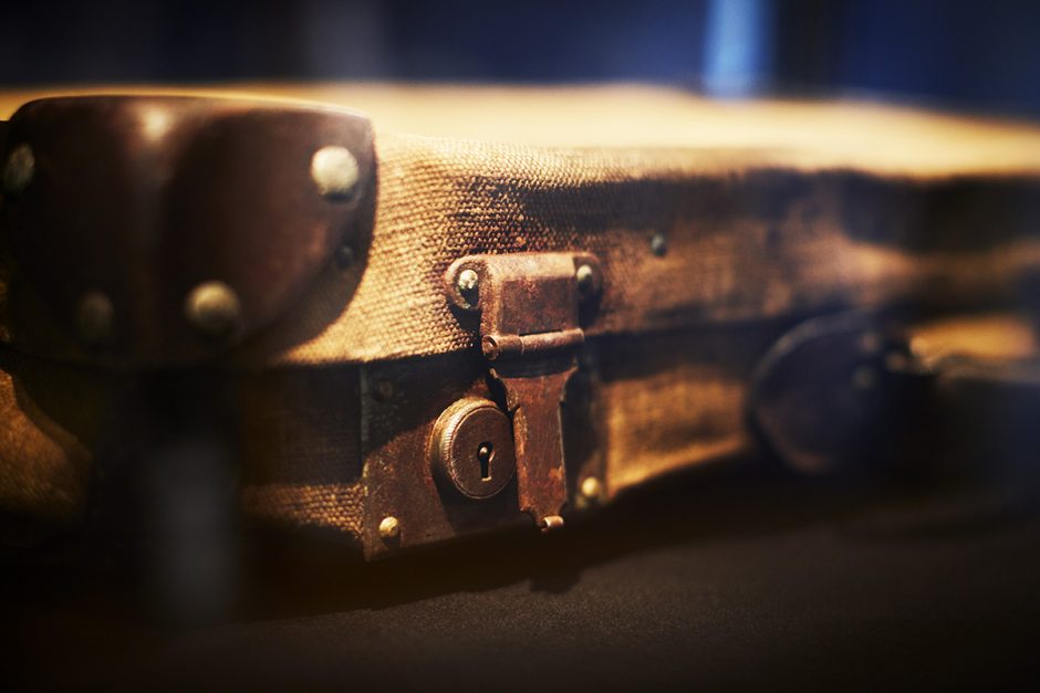 En resväska från Auschwitz-Birkenau som visas i utställningen Speaking memories, Historiska museet. Foto: Erik Lernestål, Statens historiska museer.
