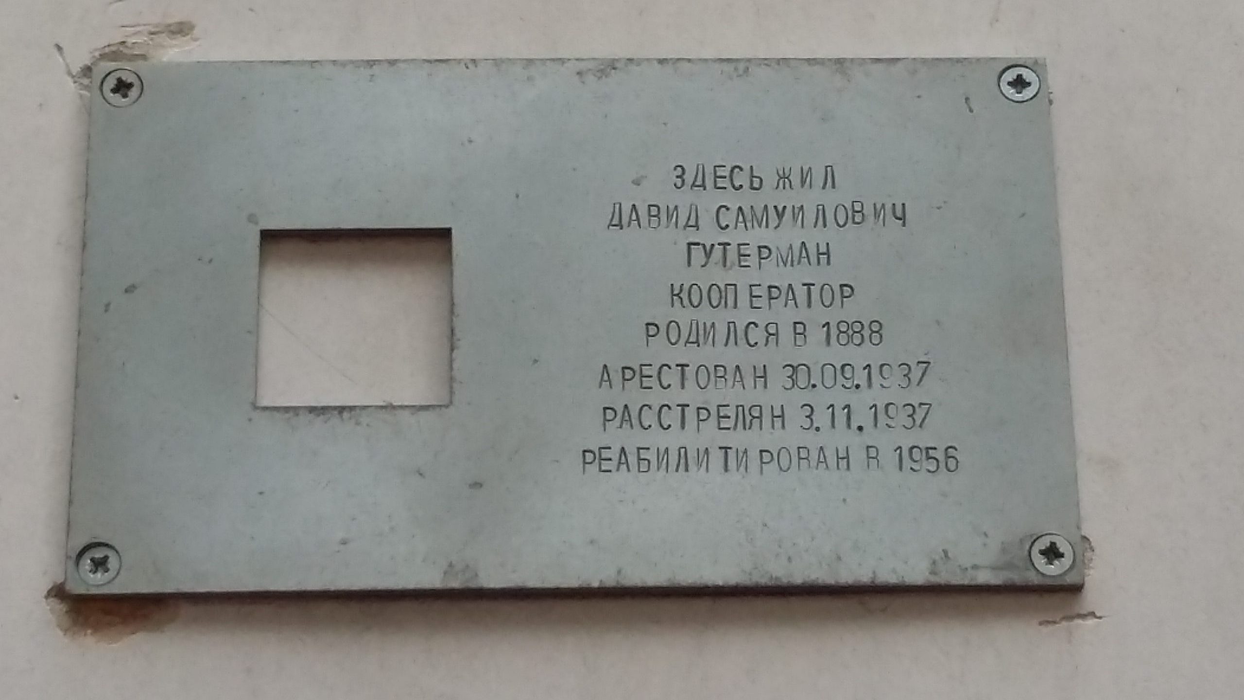 På fasaden till flera hus i Moskva kan man få se en liten oansenlig rektangulär metallplatta med en inskrift. Det rör sig om minnesplaketter över personer som drabbades av den politiska terrorn under Sovjettiden, och som bodde på just dessa adresser när de arresterades och fördes iväg för att sedan aldrig återvända. På plaketten kan man läsa personens namn, yrke, födelsedatum och datumen för arrestering, avrättning och rehabilitering.