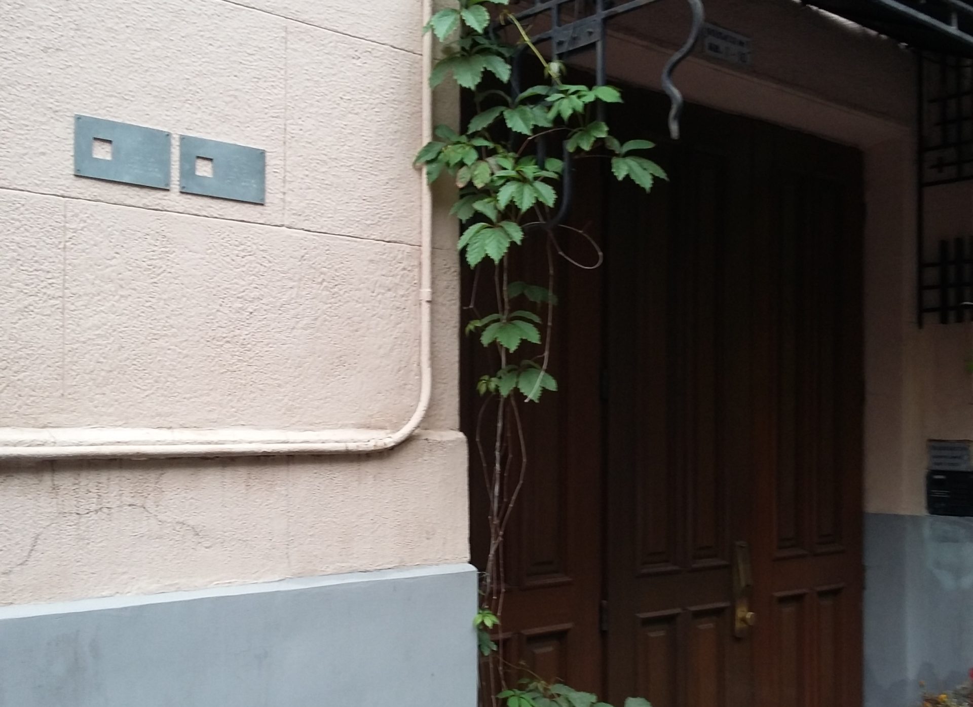 Minnesplaketter på adressen Vspolnyj pereulok 17 (Вспольный переулок 17). Foto: Ann Wikström.