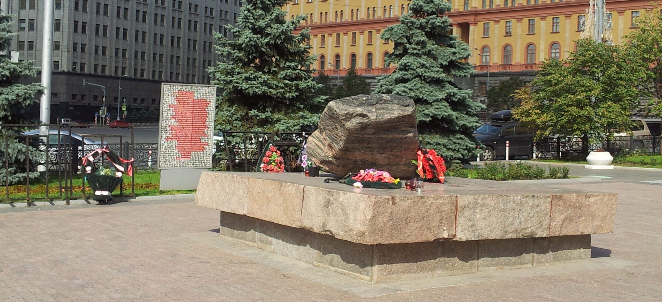 Knappt synligt, i liten park framför kortsidan på Tekniska museet, alldeles invid Lubjankatorget, ligger ett av de första och kanske viktigaste minnesmärkena över offren för sovjetregimens terror mot den egna befolkningen.