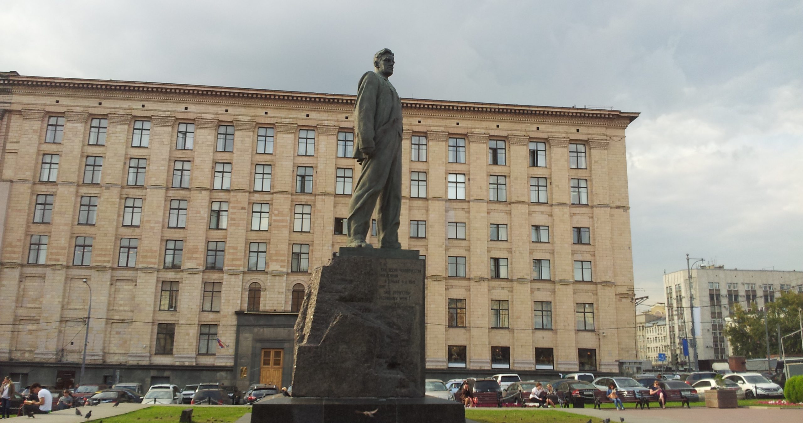 Statyn av Vladimir Majakovskij blickar ut över Triumftorget. Foto: Ann Wikström.