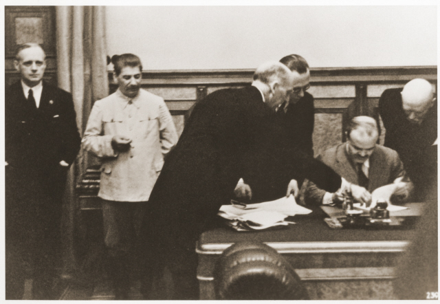 Sovjetunionen sluter en icke-angreppspakt med Tyskland (Molotov-Ribbentroppakten). I ett hemligt tilläggsprotokoll, delar man upp centrala och östra Europa i intressesfärer. Sovjetunionens intressen erkänns i Finland, Baltikum, östra Polen och Bessarabien.