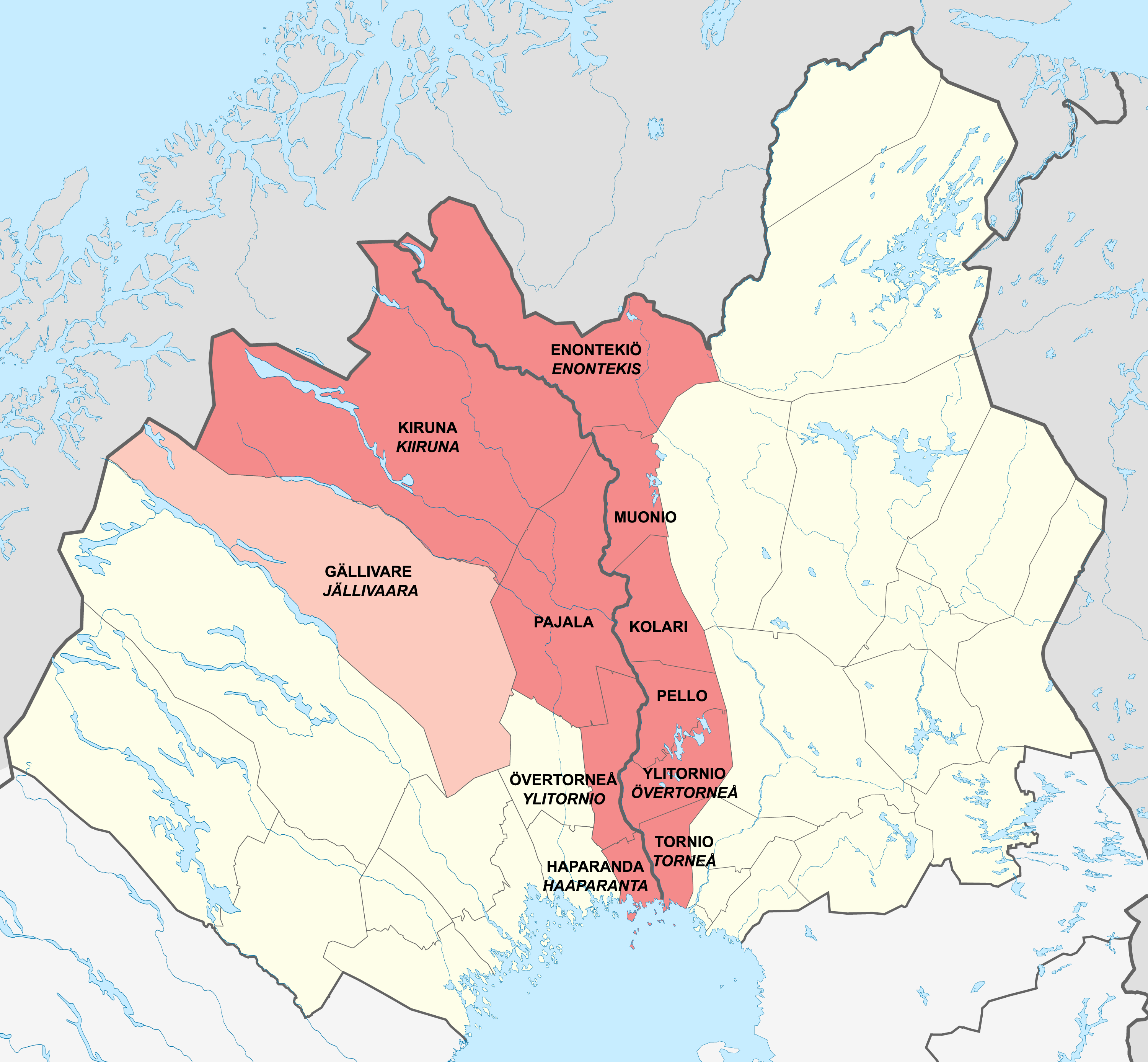 Tornedalens kommuner. Bildkälla: Fenn-O-maniC / Wikimedia Commons. (CC-BY-SA)