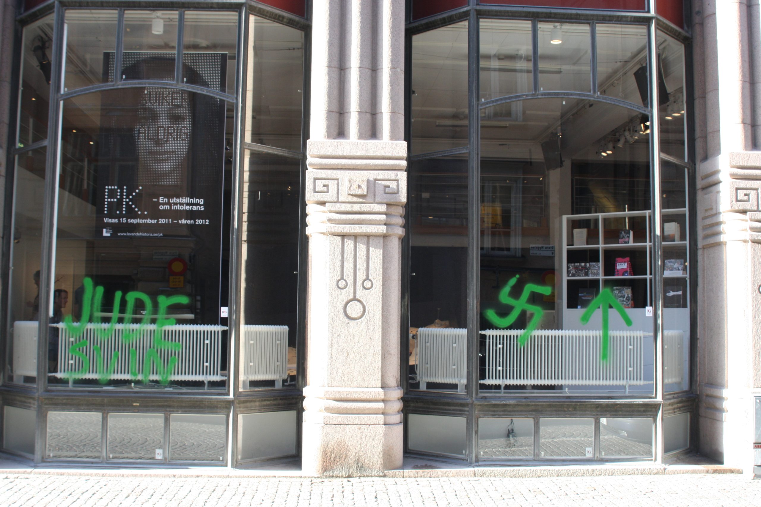 Antisemitiskt klotter på Forum för levande historias lokaler 2011.