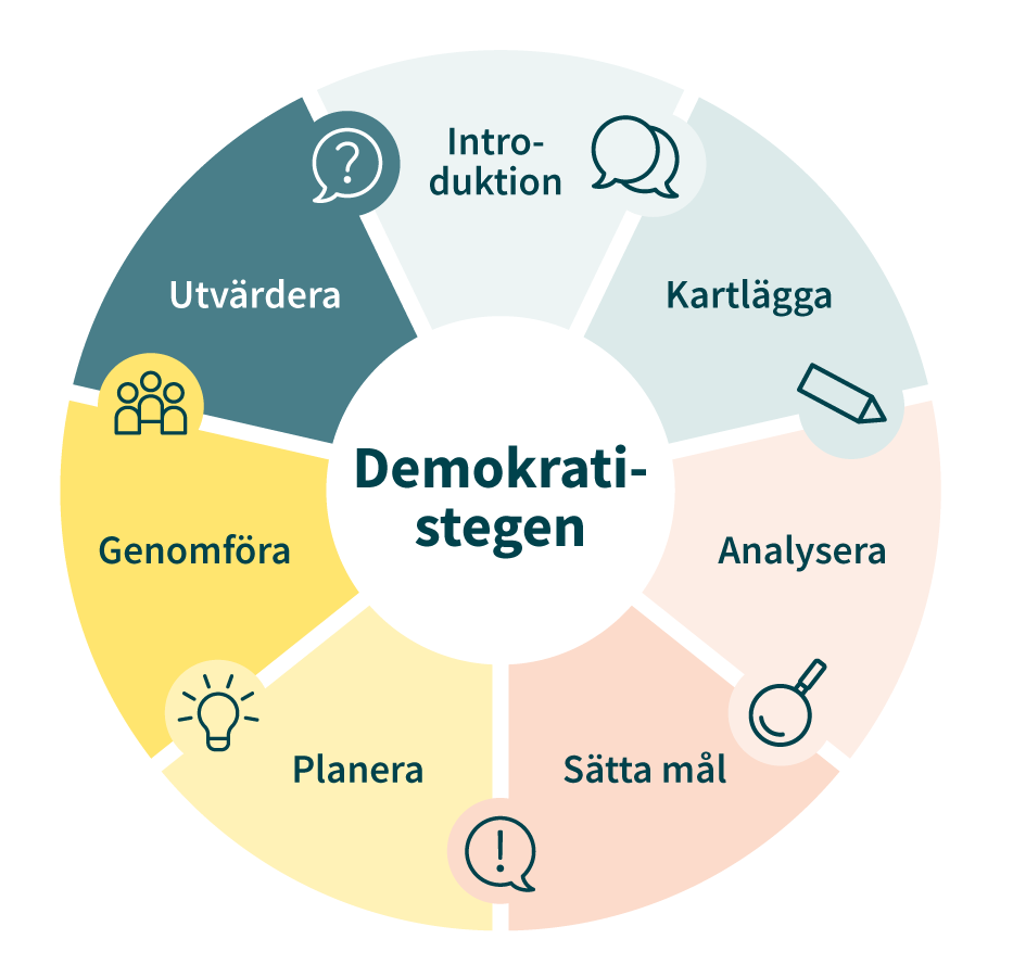 Demokratistegens arbetsmodell består av sju steg. Bild: Skolverket
