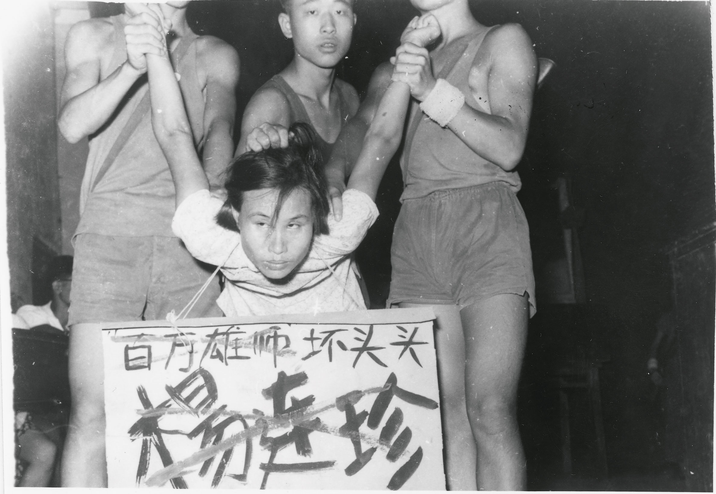 Kina 1967. Vid ett massmöte tvingar ett gäng beväpnade rödgardister jämnåriga och äldre att göra avbön och kritisera sig själva för sina ”reaktionära åsikter och förehavanden”. Källa: Michael Schoenhals