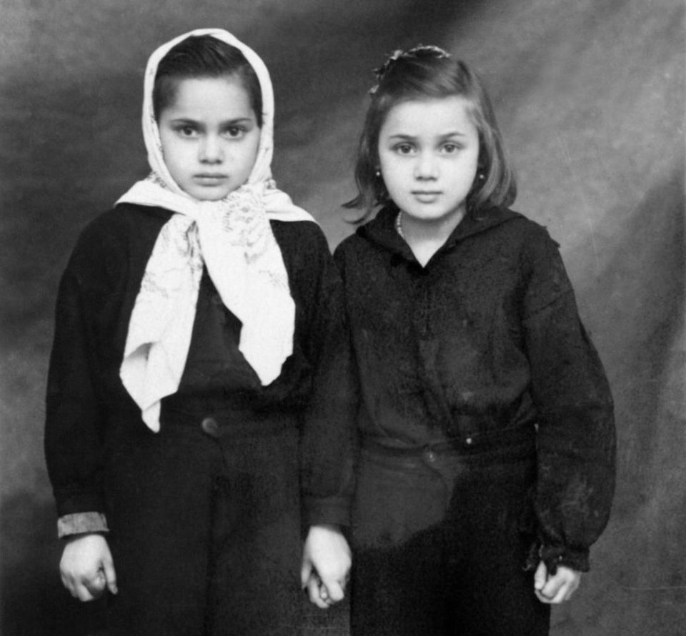 Två flickor håller varandra i handen.