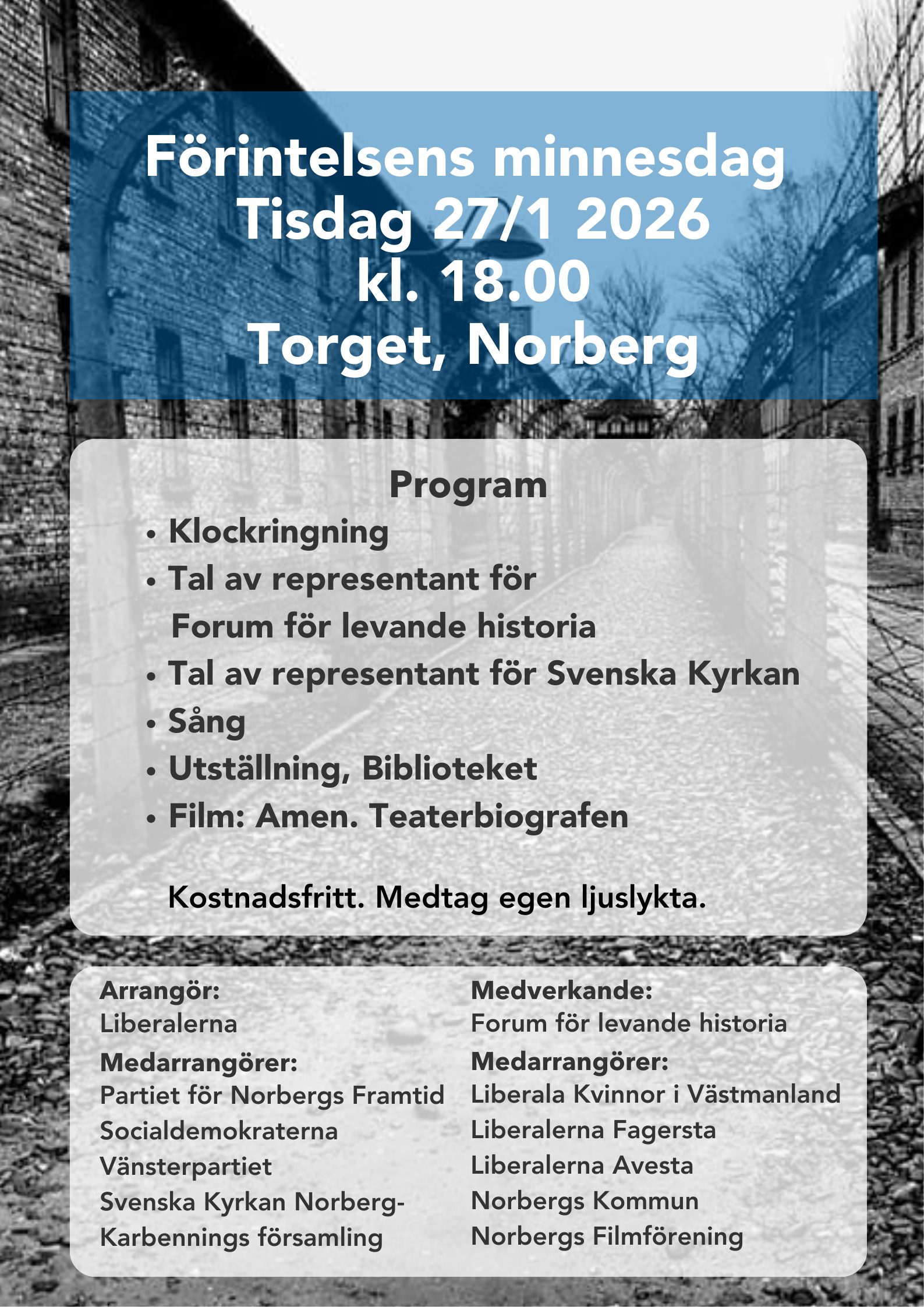 Välkommen till ceremonin för Förintelsen minnesdag i Norberg.