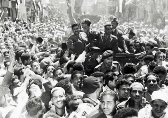 De fria officerare välkomnas av folkmassorna i Kairo några månader efter revolutionen 1952. Foto: Wikimedia Commons.