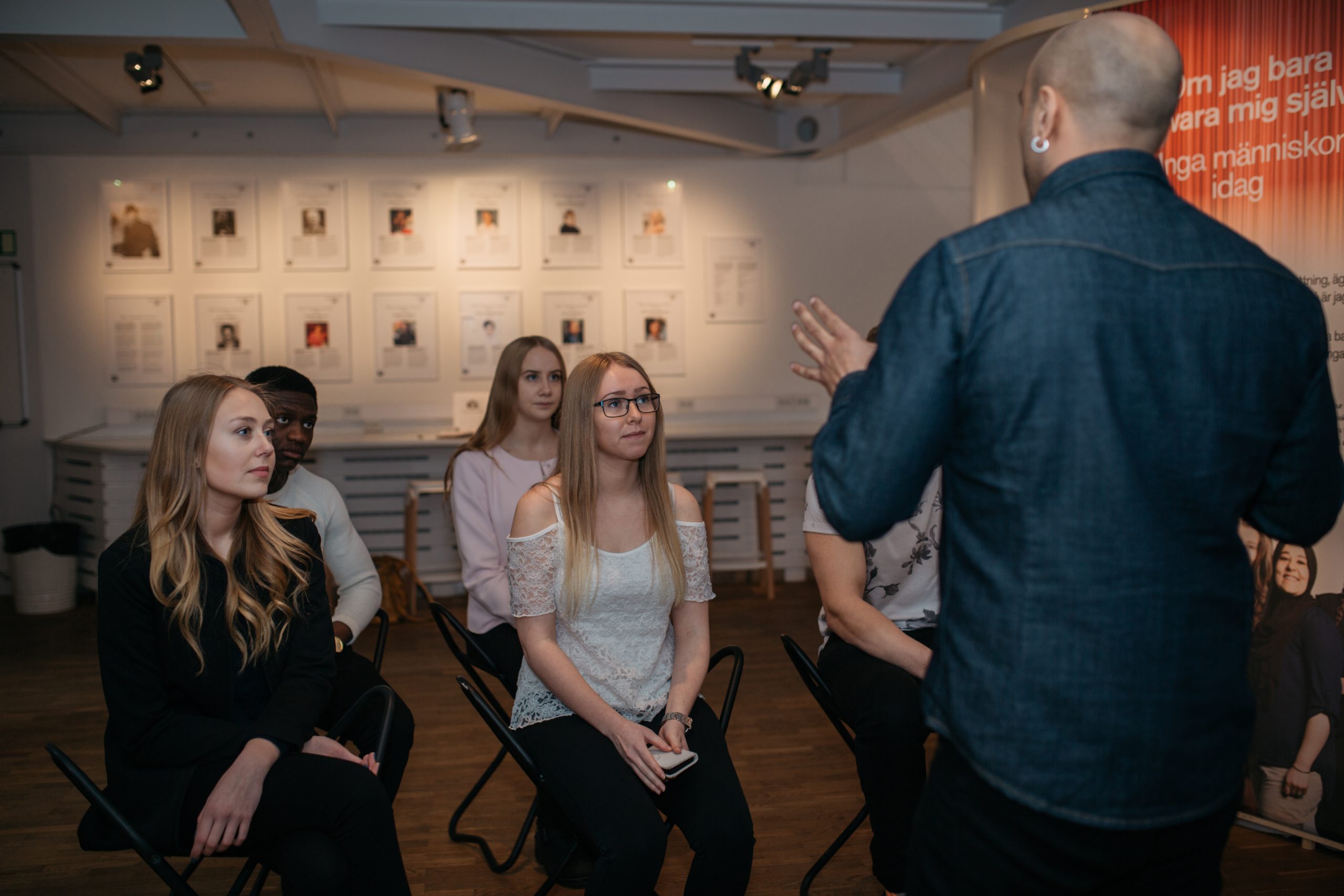 Elever möter en av våra pedagoger i en workshop. Foto: Linda Rehlin