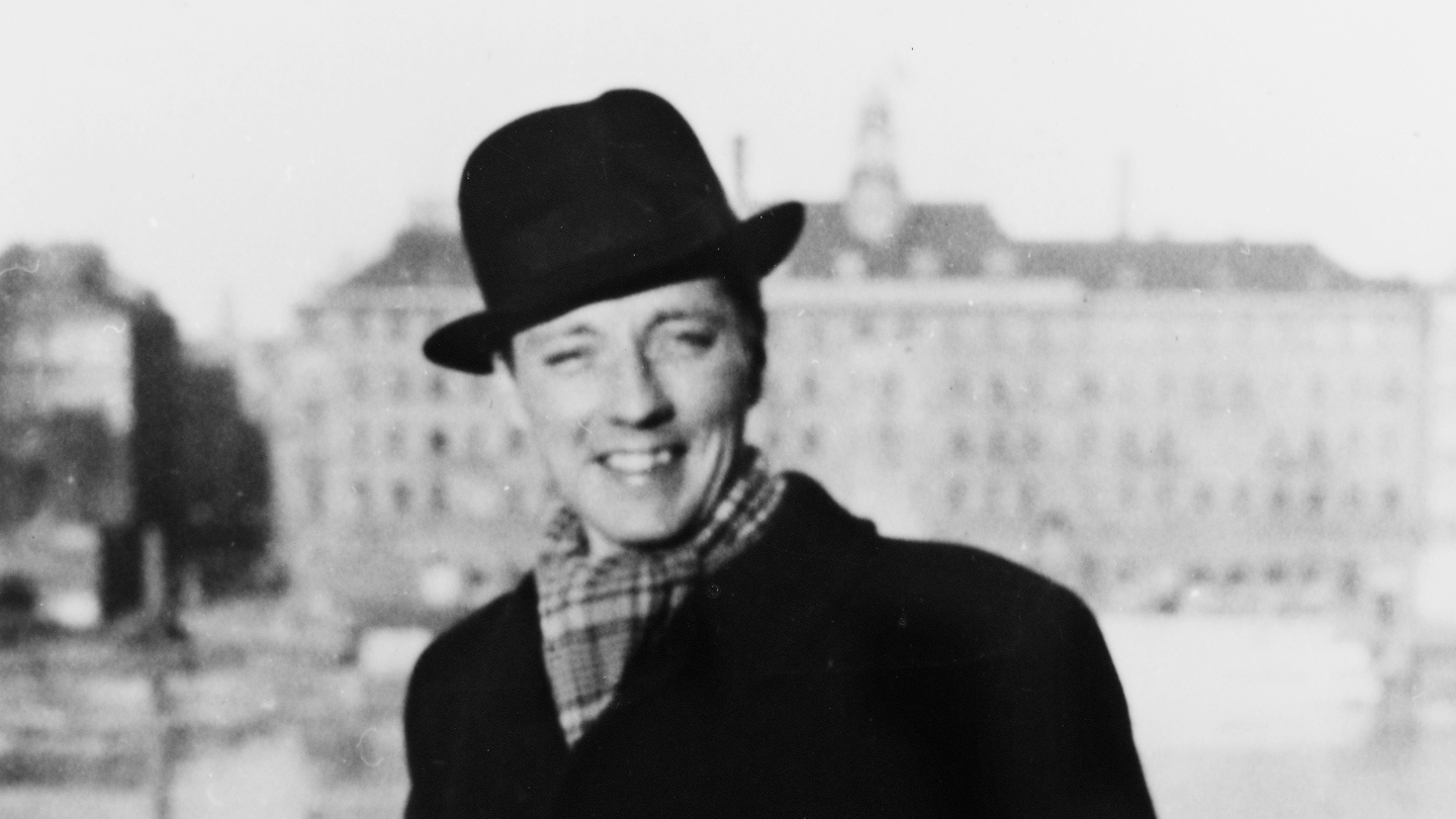 Porträtt av Raoul Wallenberg iklädd kostym som tittar på något utanför bild.