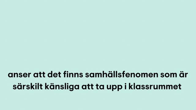 - Hur stor andel av lärarna upplever att det finns svåra samhällsfrågor som leder till spänningar i klassen och/eller till svårhanterade samtal?