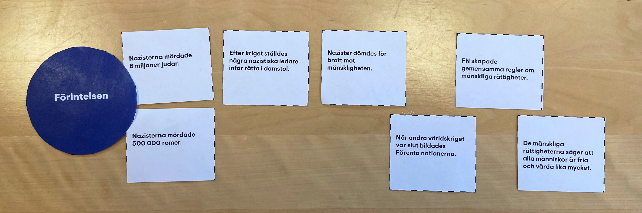 - Be eleverna att rangordna korten – vilka Konsekvenser/följder är nära i tid till Förintelsen och vilka konsekvenser/följder har varit mer varaktiga?