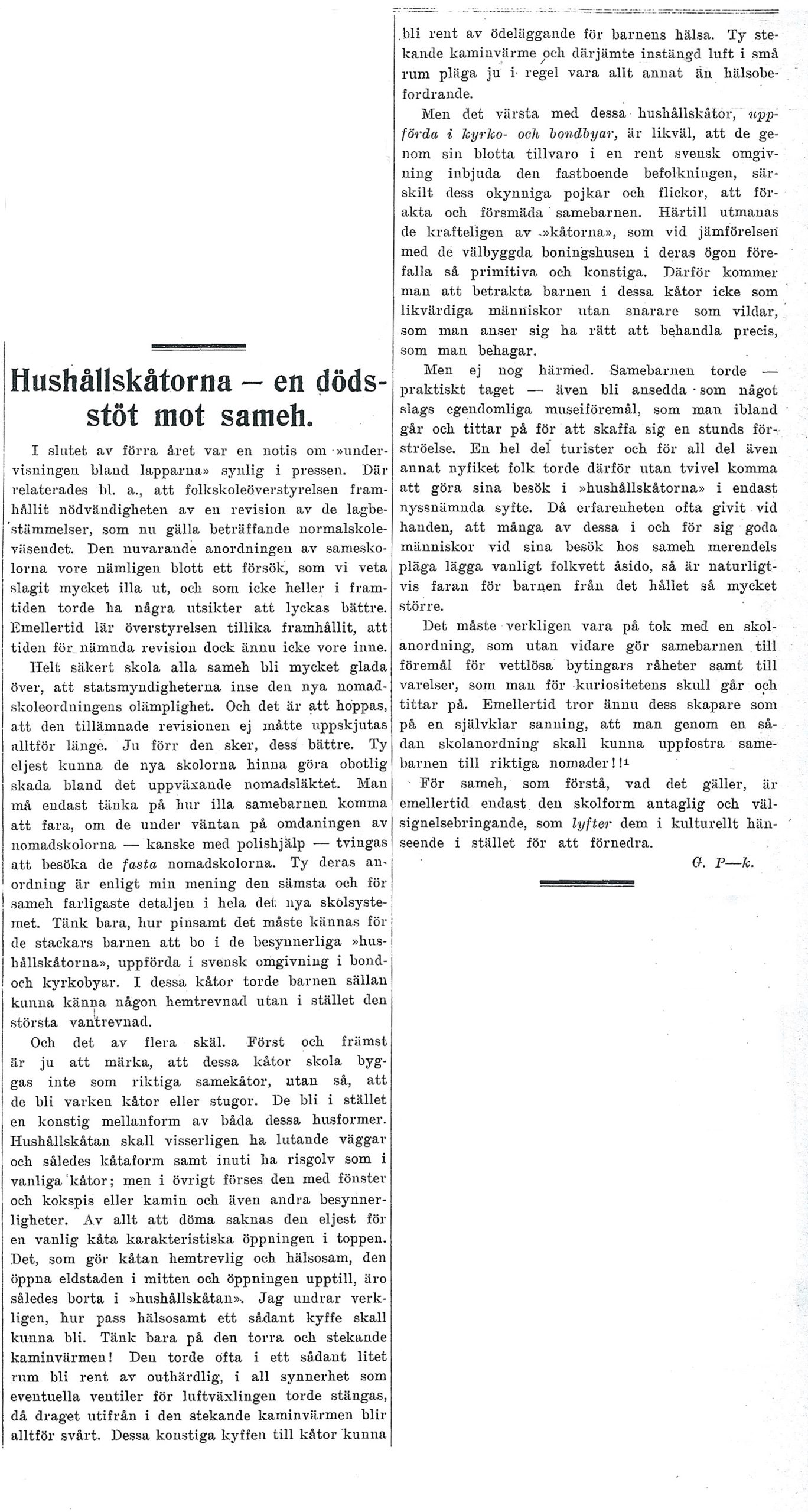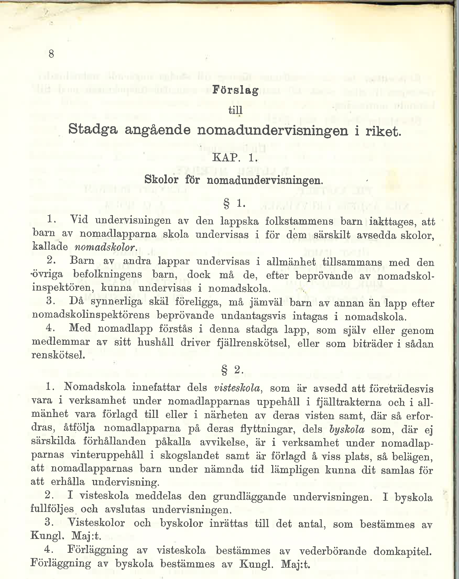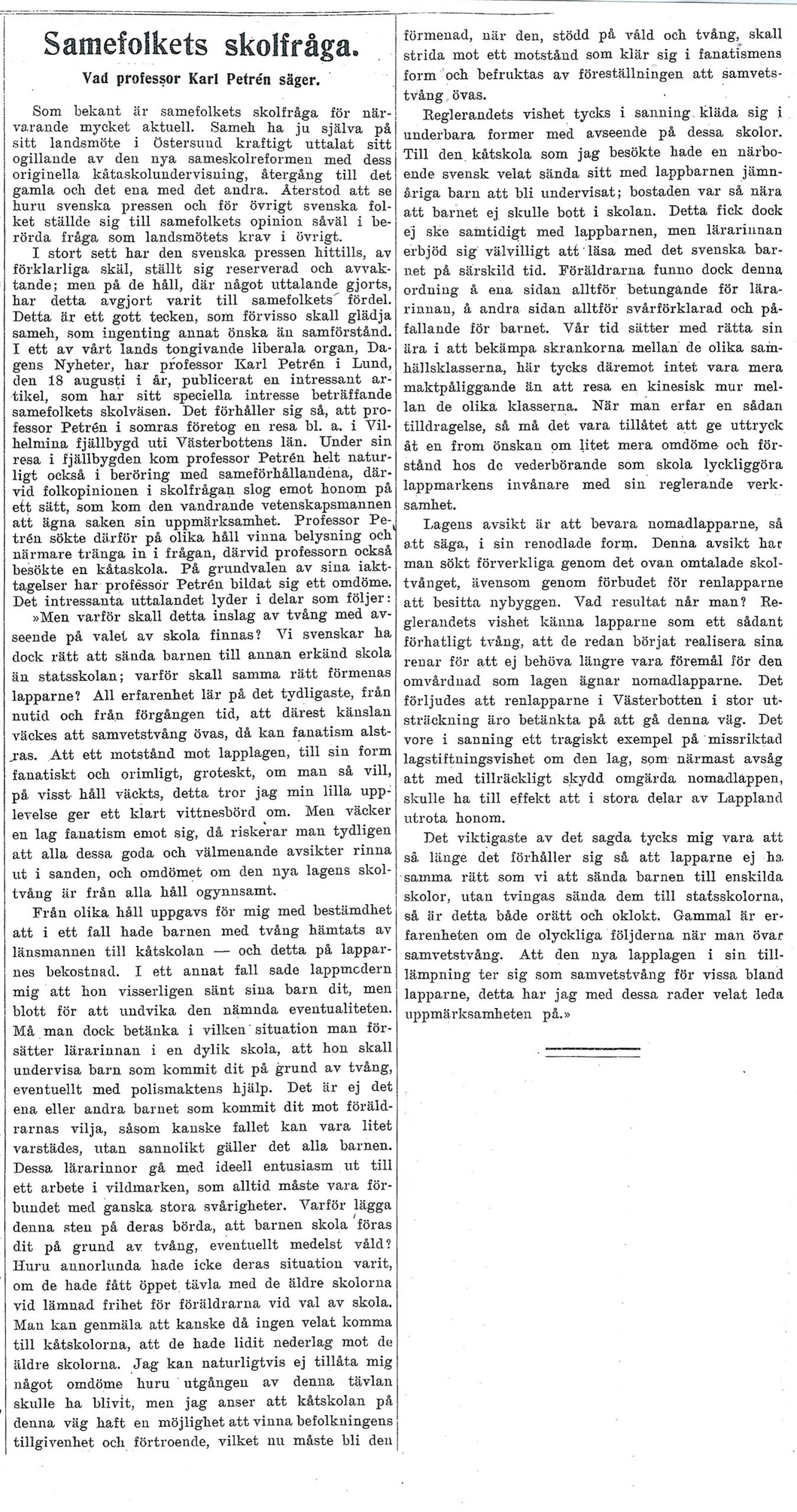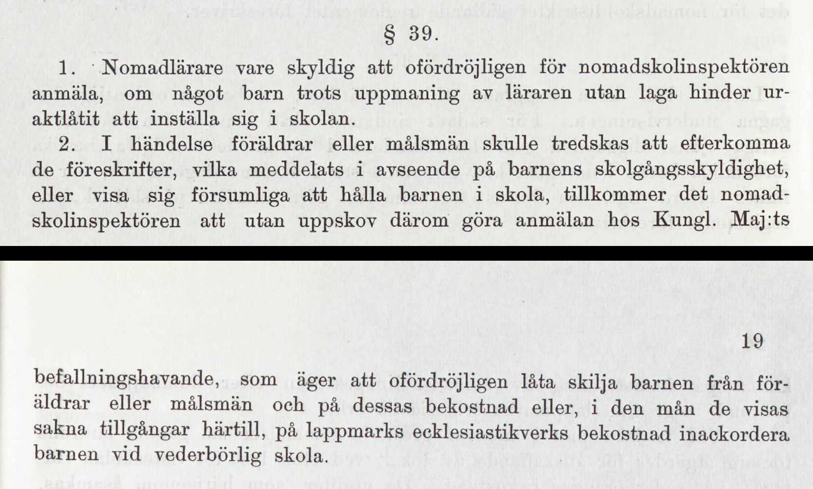 År 1882 infördes allmän skolplikt i Sverige, vilket betydde att alla barn mellan 7-14 år skulle gå i skolan. För renägande samer startades speciella skolor som kallades nomadskolor. Men när den nya fasta nomadskolan i Gällivare skulle öppna i november 1918 kom inga barn. I flera andra nomadskolor skedde samma sak.