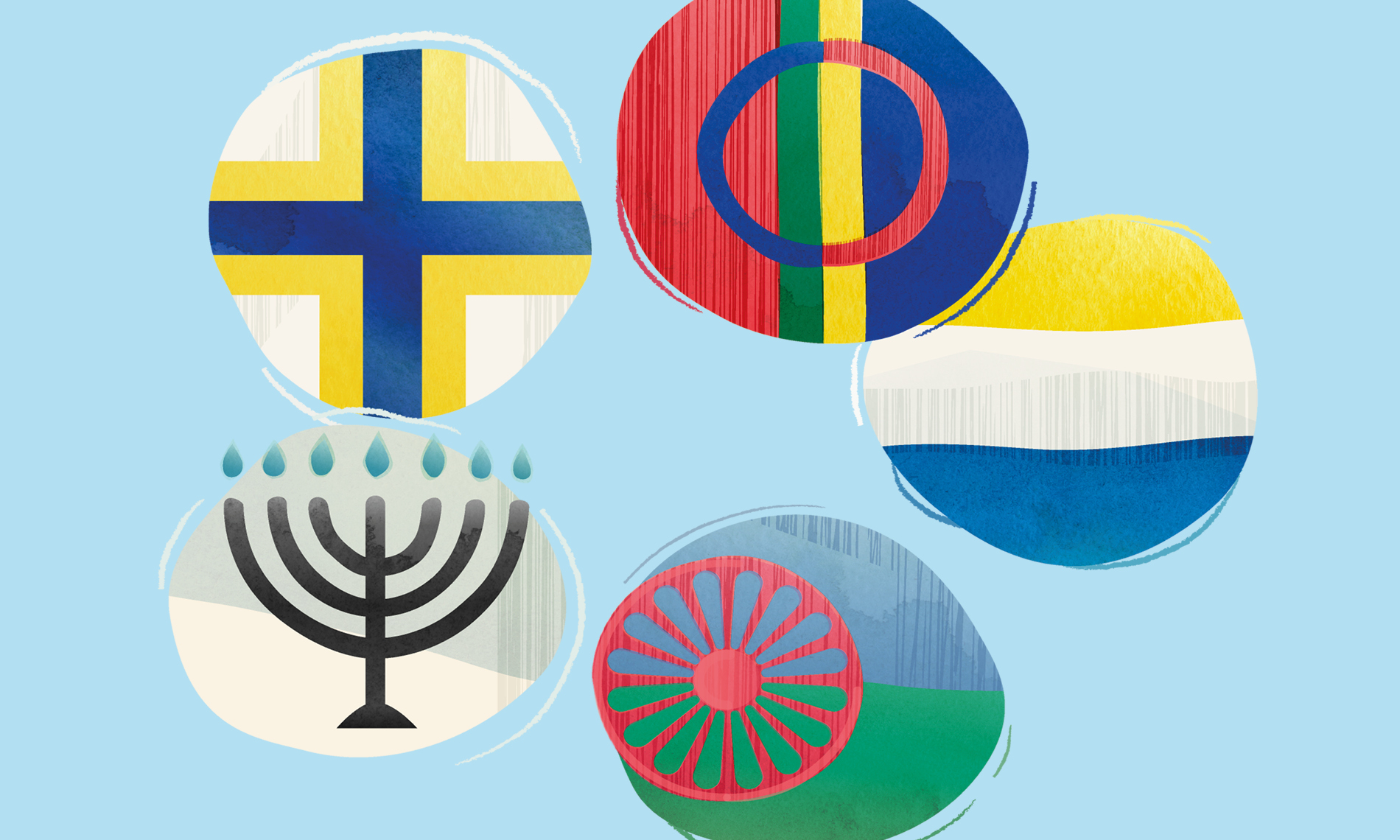 De nationella minoriteternas olika symboler. Illustration: Geektown