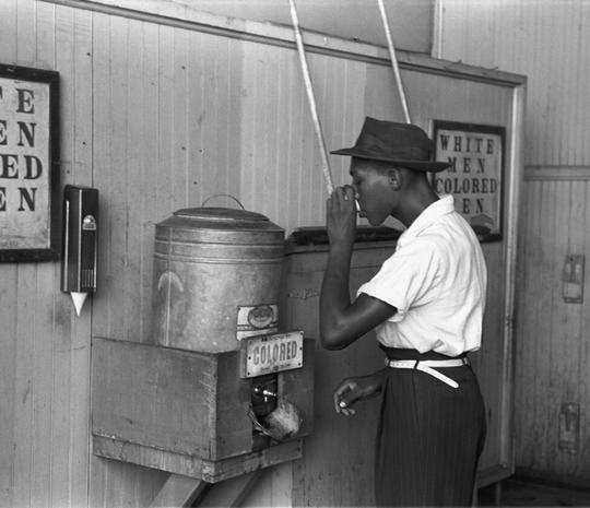 En man dricker vatten vid en vattenstation för ”colored” i Oklahoma City i juli 1939. Foto: United States Library of Congress