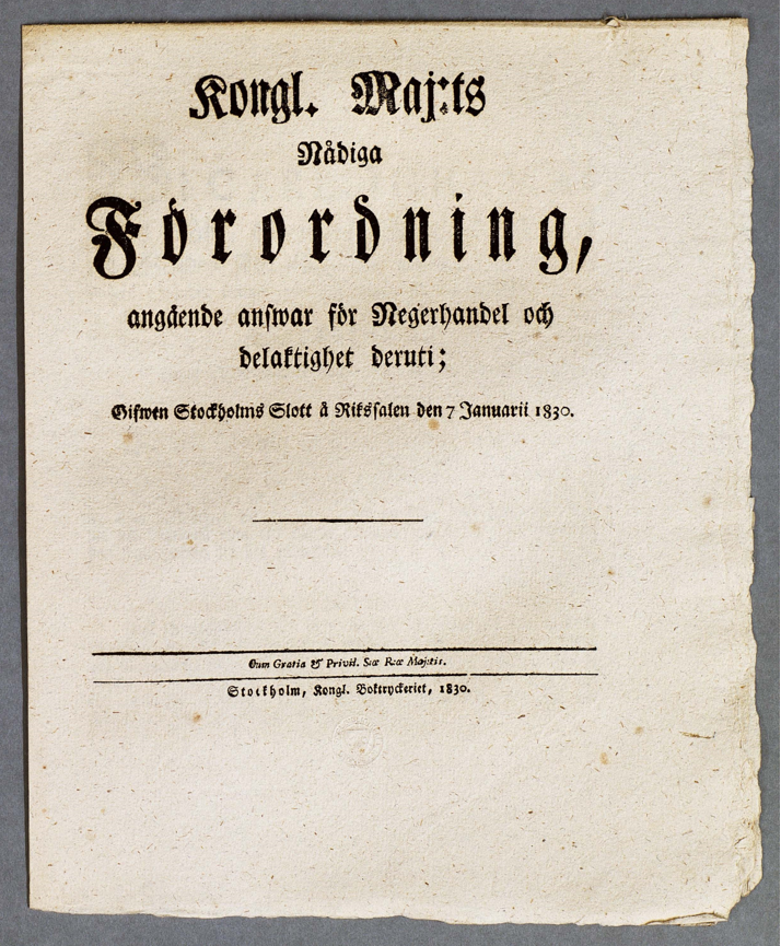 Den svenska lagen mot slavhandeln 1830