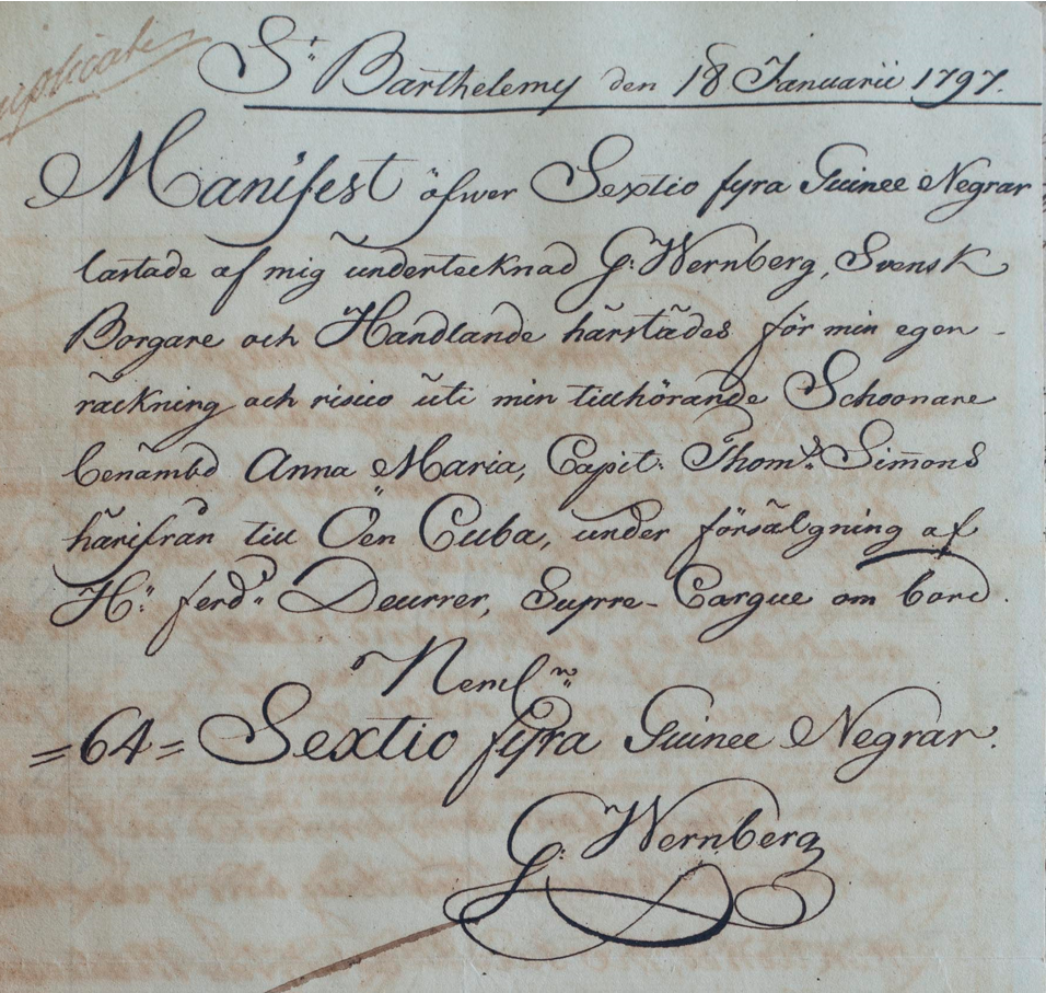 Förslavade från Afrika säljs i Gustavia