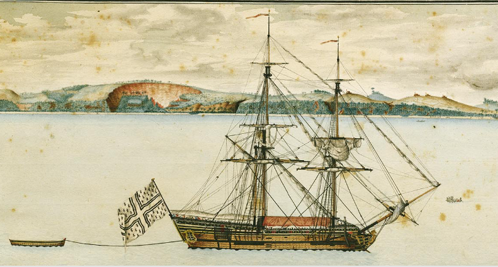 Skeppet Marie-Séraphique vid den afrikanska kusten. Källa: Musée d’histoire de Nantes.