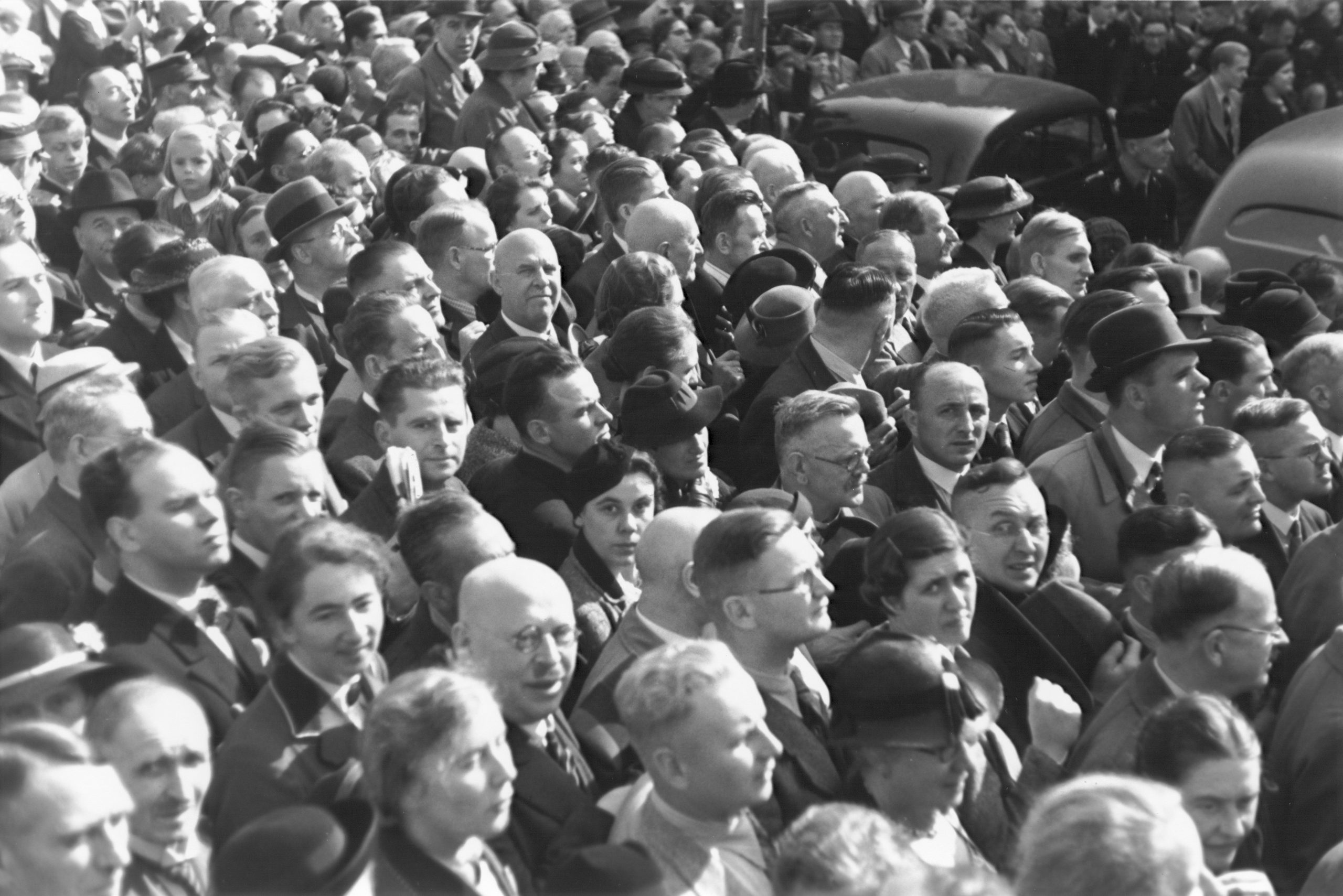 Visningsbild B. Judiska österrikare köar för att få lämna landet 1938.