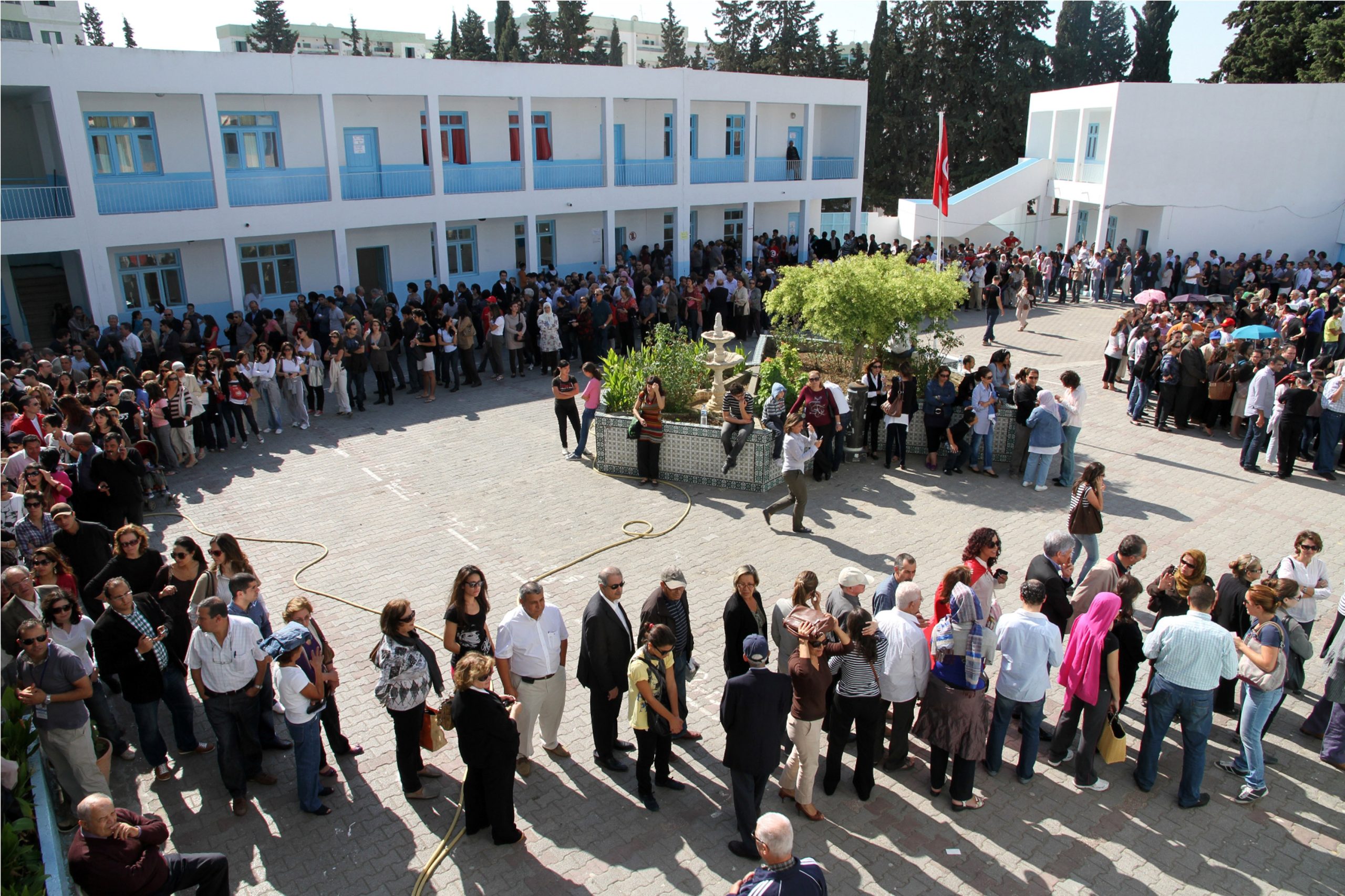 Visningsbild A. <br>Val i Tunisien 2011. Valet hölls nio månader<br>ef-ter att presidenten Ben Ali störtades och den arabiska våren började spira. Det var<br>en historisk dag och köerna ringlade sig långa utanför vallokalerna. Många ville delta<br>i det första riktiga valet i landet sedan 1956. Upp emot 90 procent av de röstberättigade tunisierna utnyttjade sin rösträtt. (Bildkälla: Scanpix).