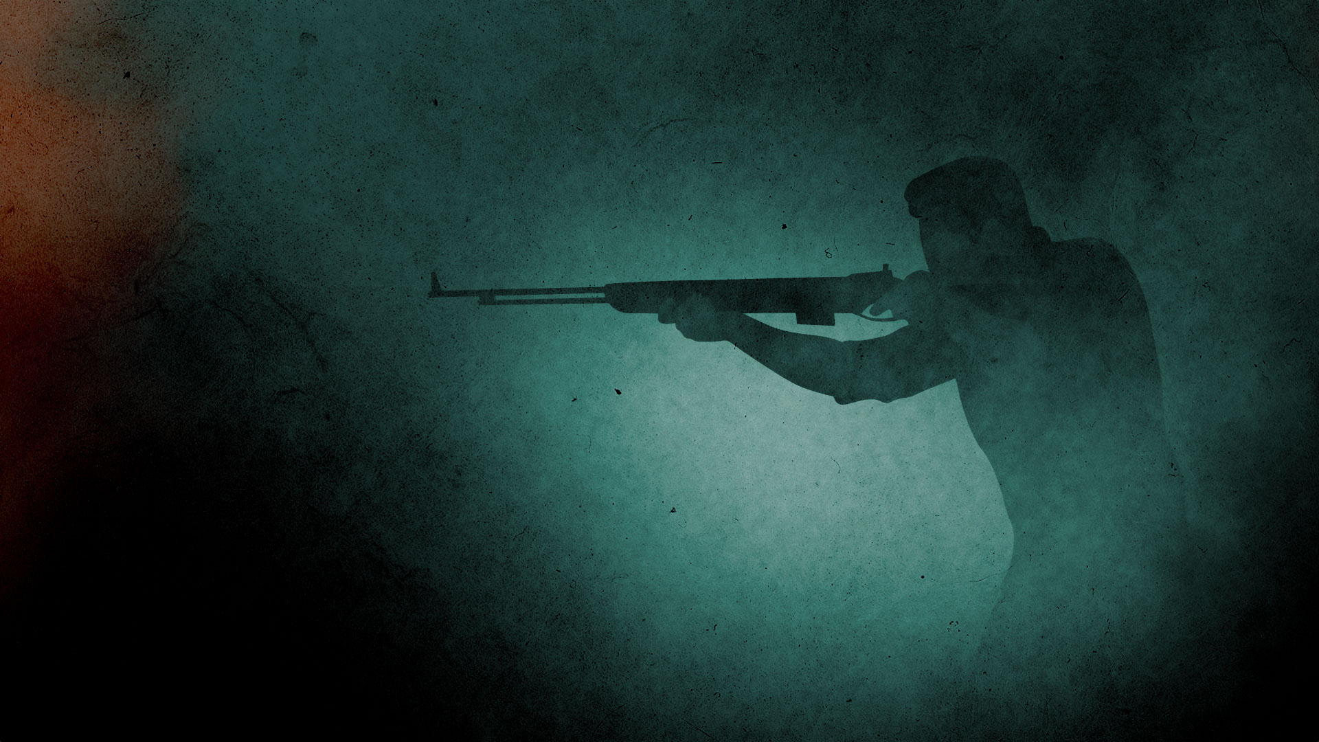 Illustration på en skugga med en man som siktar med ett gevär. Bilden är grön, vit och svart i olika nyanser.