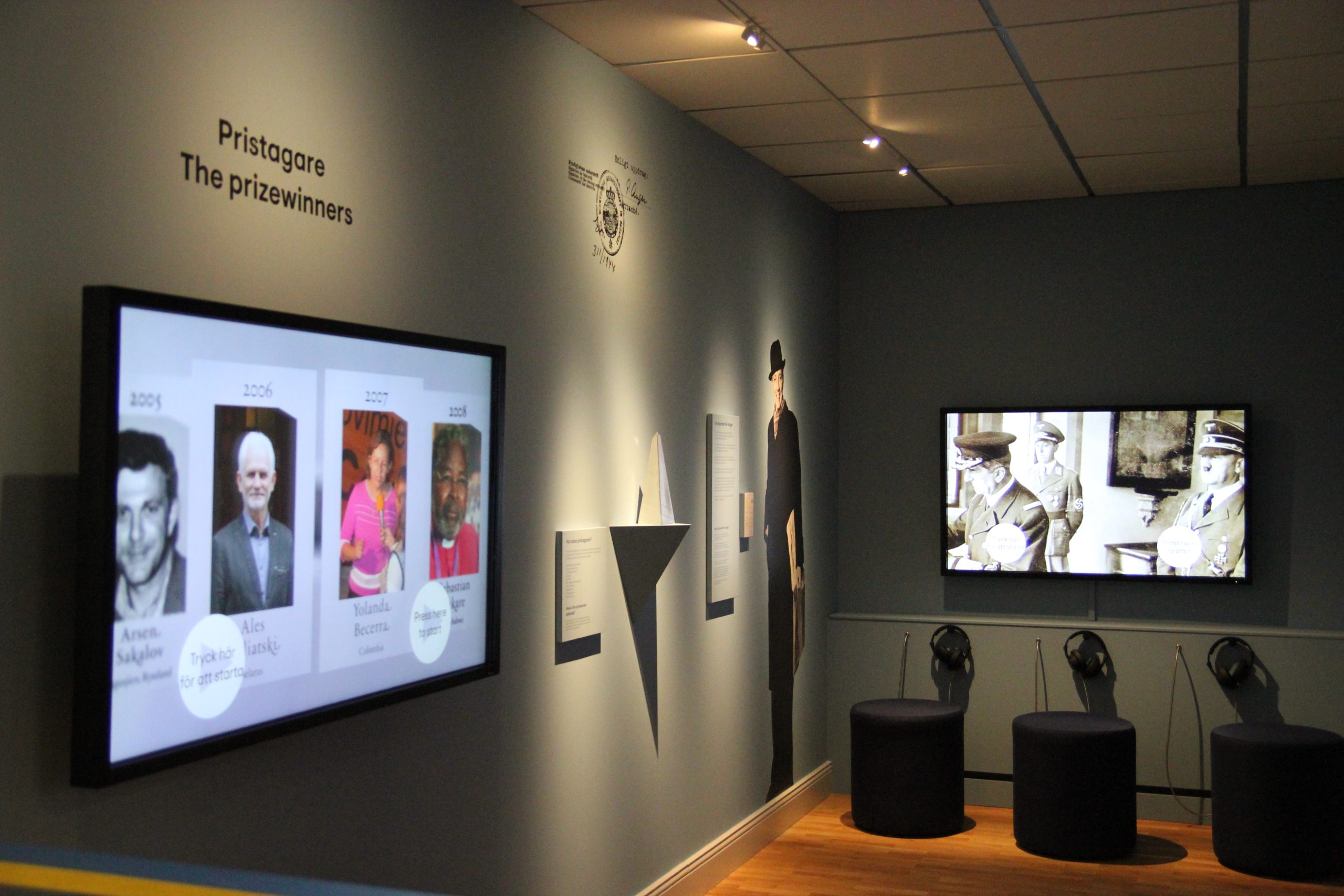 Genom text, bild och film får besökaren ta del av diplomat Per Angers insats under andra världskriget och de modiga pristagare som följer i hans fotspår.