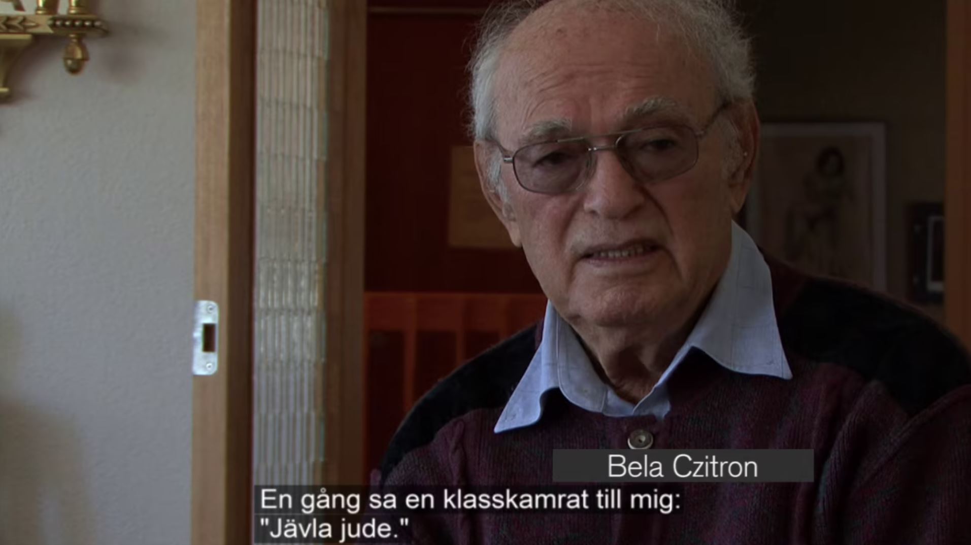 I klippet ovan berättar Bela om hur han blir kallad "jävla jude" av en klasskamrat och att han, Bela, är den som då blir bestraffad när han replikerar klasskamraten med "jävla ungrare".