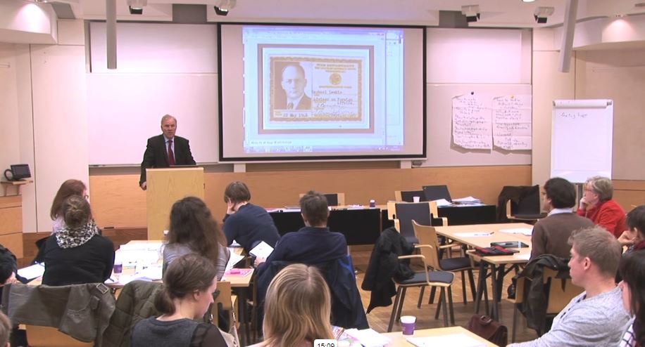 Det juridiska systemet om folkrätt och mänskliga rättigheter. Från Raphael Lemkin till idag. Föreläsning av Ove Bring, professor emeritus i folkrätt, vid lärardag i Facing History and Ourself april 2013.